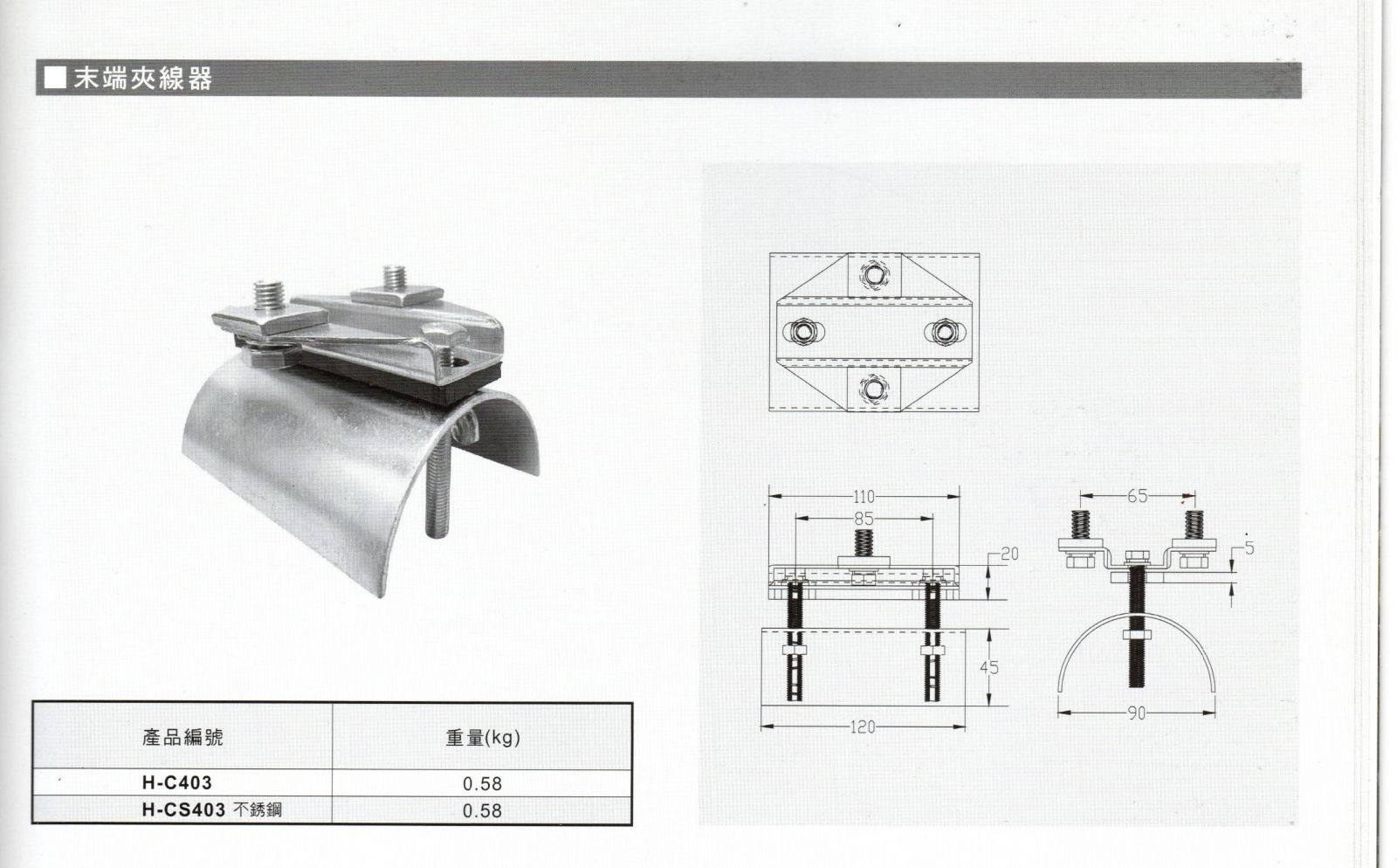 型號:H-C403(C40末端夾),H-CS403(不鏽鋼)